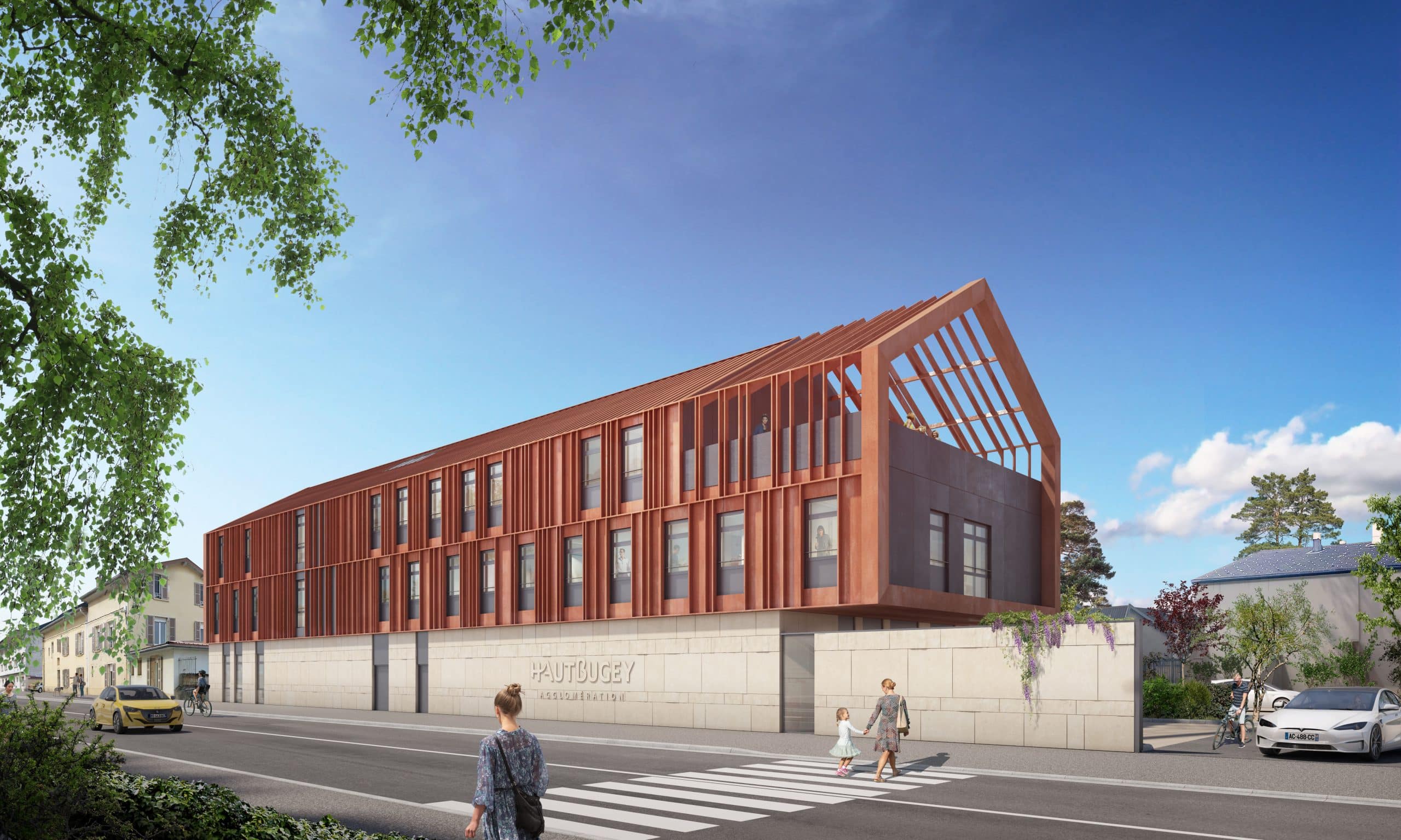 La conception bioclimatique privilégie les économies d’énergie grâce à la géothermie et aux panneaux photovoltaïques, combinant performance énergétique, confort et respect de l’environnement. La volumétrie simple, associée à une toiture inspirée de l’architecture locale, souligne l’équilibre entre tradition et modernité.